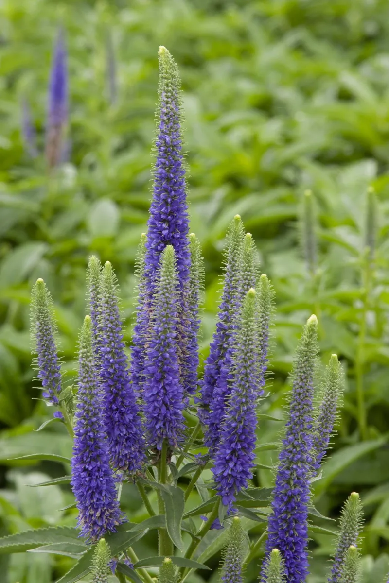 Veronica Blue Charm dazzles with its spiky blue flower spikes, providing vertical interest in any garden design. These resilient perennials bloom from early summer, offering a long season of color.