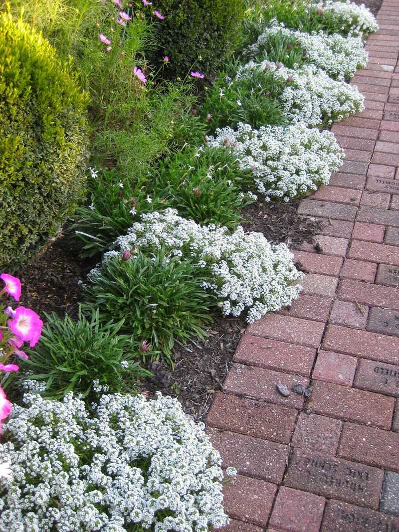 Alyssum, with its delicate clusters of tiny white flowers, forms a fragrant carpet that enhances garden paths and borders. Known for its sweet scent, this annual is a favorite for adding texture and scent to gardens. Alyssum thrives in sunny spots and is easy to grow, requiring little maintenance. Its ability to attract beneficial insects makes it a valuable addition to any garden, offering both beauty and ecological benefits.