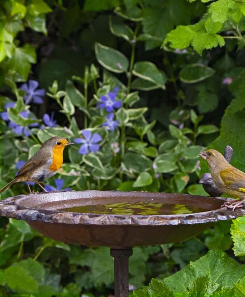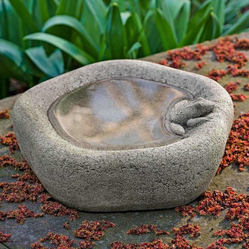 Flat-bottomed baths frustrate birds of different sizes! Small pebbles, river rocks, or even a gently sloped basin creates the perfect bathing environment for diverse species.