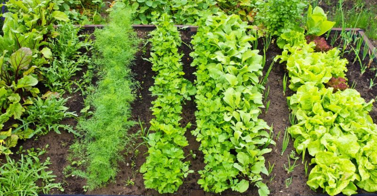 Lettuce is a versatile companion for cucumbers, offering mutual benefits. Its quick growth provides ground cover, suppressing weeds and maintaining soil moisture. Lettuce thrives in the shade of cucumber vines, especially in hot weather. This shading helps to keep temperatures cooler for both plants, reducing stress and supporting healthy growth. The combination of lettuce and cucumbers in a garden bed enhances the microclimate and improves overall plant health and yield.