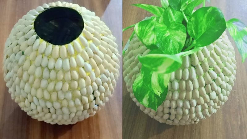 Transform ordinary planters into decorative pieces with pistachio shells. Glue them onto the exterior for a rustic, charming look.