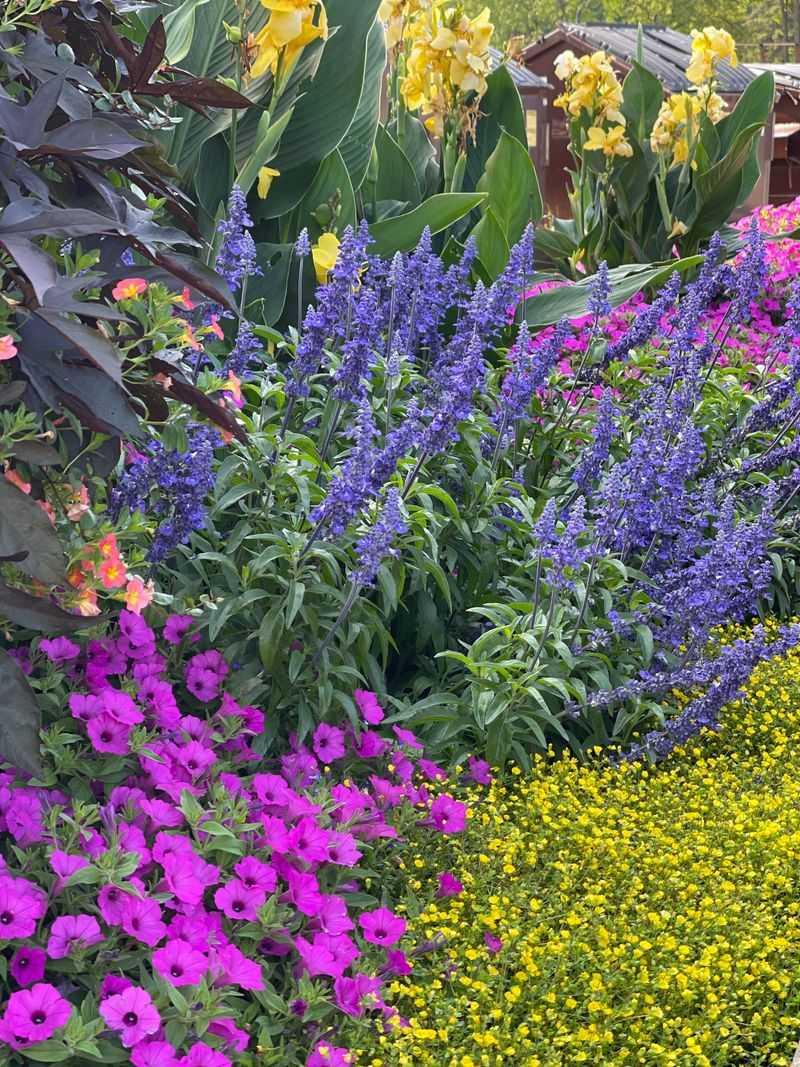 Salvia, with its tall spikes of blue or purple flowers, brings a vibrant splash of color to a lily garden. These sun-loving plants thrive in the same conditions as lilies, enjoying well-drained soil and ample sunlight. Salvia attracts a variety of pollinators, promoting a healthy garden ecosystem. Their aromatic foliage repels pests, providing natural protection for lilies. Salvia’s bold colors and upright growth habit enhance the visual appeal of the garden, creating a dynamic and lively atmosphere. Together, they form a vibrant and colorful garden paradise.