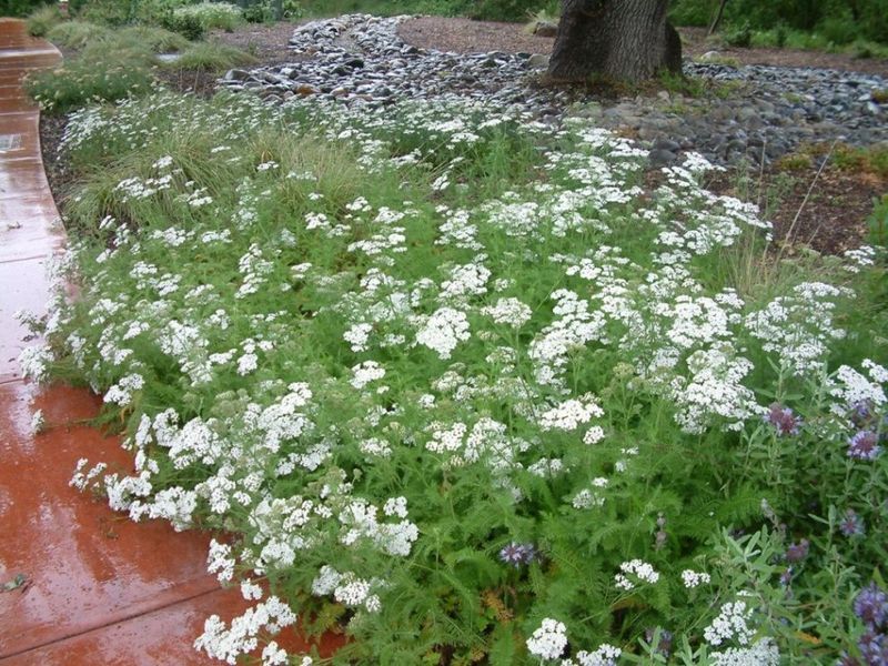 Achillea millefolium, commonly known as Common Yarrow, is a master of resilience with its mildew-resistant flat umbels. Picture this perennial adding structure and interest to a garden, its clusters of small white flowers standing tall. Ideal for sandy or rocky soils, Yarrow is drought-tolerant and thrives where many others falter. Its ability to integrate into naturalistic schemes makes it a versatile choice for both traditional and modern gardens. Beyond its visual appeal, Yarrow serves as a medicinal plant, historically used for its healing properties.