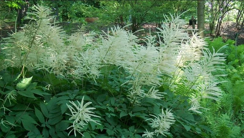 Aruncus dioicus, or Goat’s Beard, brings elegance to shaded gardens with its feathery white plumes. Picture a woodland garden where these blooms rise gracefully above coarse foliage, creating a striking silhouette. Tolerant of clay and wet sites, Goat’s Beard thrives where others might struggle, offering both beauty and resilience. Its ability to adapt to various conditions makes it a versatile choice for diverse landscapes. Beyond its visual allure, this perennial is low-maintenance, providing year-round interest with minimal effort from the gardener.