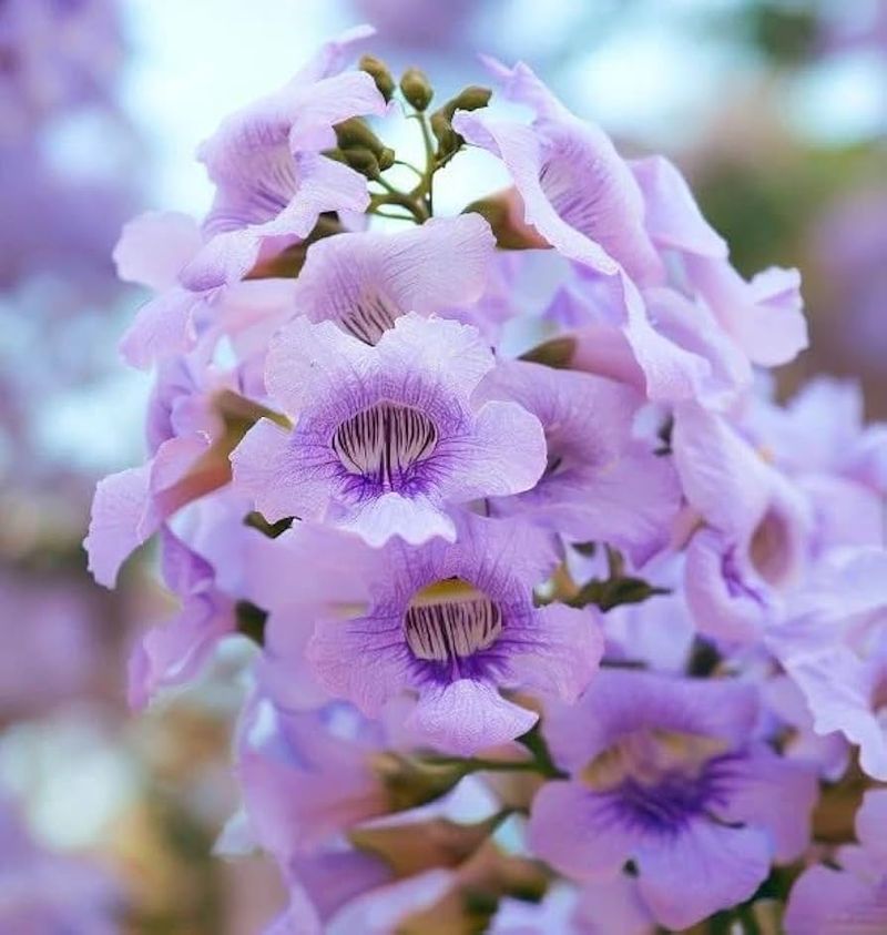 The Foxglove Tree, with its towering stature, becomes a beacon of vibrant purple blooms each spring. Its flowers resemble large trumpets, inviting bees and birds with their sweet scent.