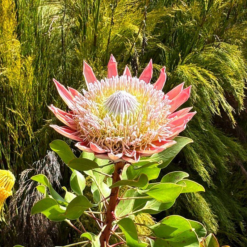 Crowned as South Africa’s national flower, the King Protea’s immense bloom is both a symbol and a spectacle. Its bowl-shaped flower head, filled with dense, colorful petals, resembles a regent’s crown.