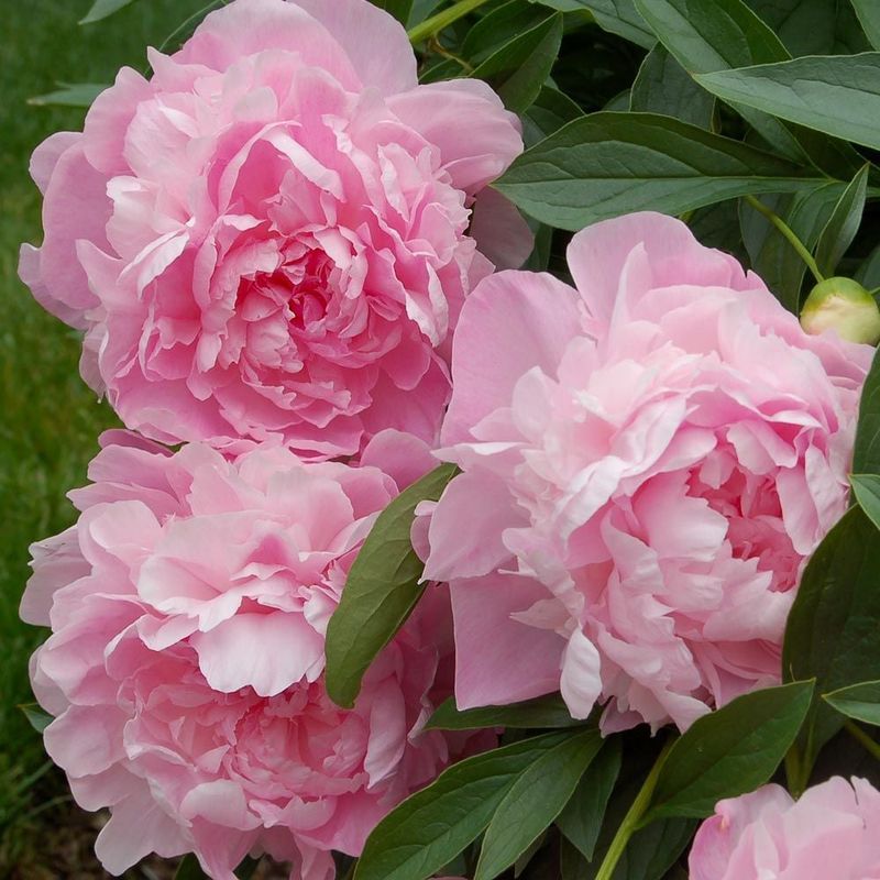 Peonies captivate with their lush blooms and intoxicating fragrance. Each flower, often in shades of pink and white, can measure up to 10 inches across.