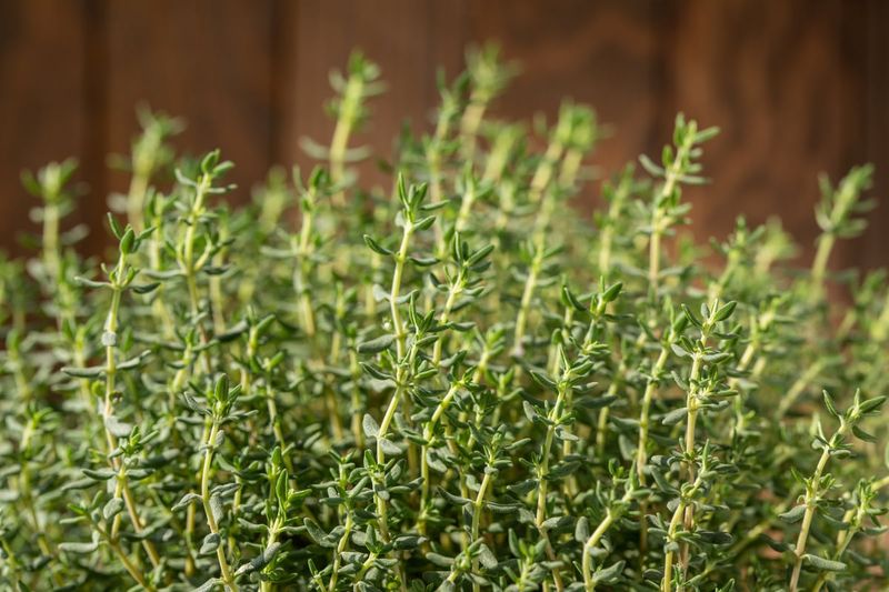 Thyme, with its aromatic charm, serves as both a culinary and garden ally. Its pungent scent deters pests, protecting raspberries. The low-growing nature of thyme makes it a perfect ground cover, preventing weed growth. Its small purple flowers add visual interest, creating a quaint garden aesthetic. Beyond its protective role, thyme is a flavor powerhouse in the kitchen, enhancing a variety of dishes. This dual-purpose plant brings both beauty and function to the raspberry patch, supporting a healthy, vibrant ecosystem for your berries to thrive.
