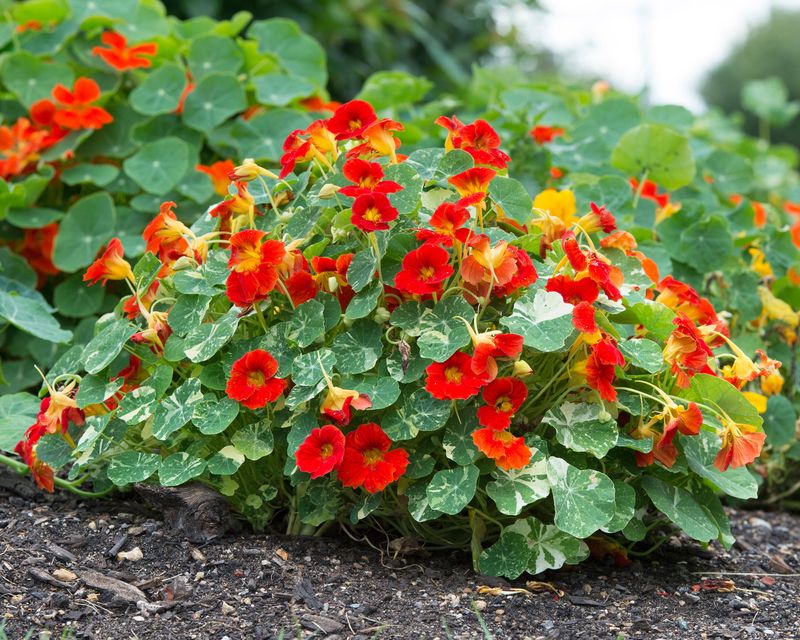 Nasturtiums are the unsung heroes of companion planting. Their peppery scent deters aphids and whiteflies while their sprawling nature provides ground cover. This cover helps retain soil moisture, benefiting thirsty raspberries. Nasturtiums’ bright flowers are not only visually appealing but are also edible, adding color and spice to salads. By planting nasturtiums, you introduce a splash of color and a protective partner for raspberries. This plant’s multitasking ability to beautify, protect, and nourish makes it a valuable asset in the garden. Nasturtiums are an excellent choice for sustainable gardening.