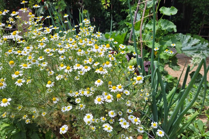 Chamomile, with its calming presence, plays a quiet yet vital role in the garden. Known for improving plant health, chamomile releases beneficial nutrients into the soil, promoting robust raspberry growth. Its delicate, daisy-like flowers add a touch of elegance to the garden landscape. Beyond its botanical benefits, chamomile is cherished for its soothing tea, offering a calming ritual for gardeners. The plant’s gentle nature and multifaceted advantages make it a wonderful addition to any raspberry patch, supporting both the plants and the gardener’s well-being.