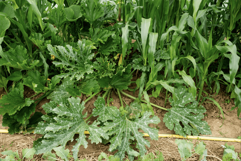 On the ground, zucchini acts as a living mulch, helping to conserve soil moisture and suppress weeds. This combination is ideal for novice gardeners looking to explore efficient planting techniques.