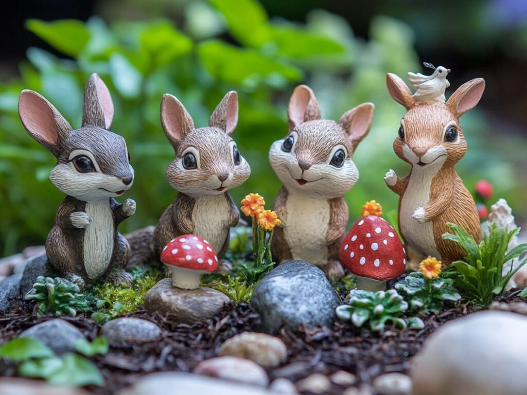 Include woodland creature figurines to add life and character to your fairy garden. These tiny animals bring a playful and whimsical element, enhancing the garden’s magic.