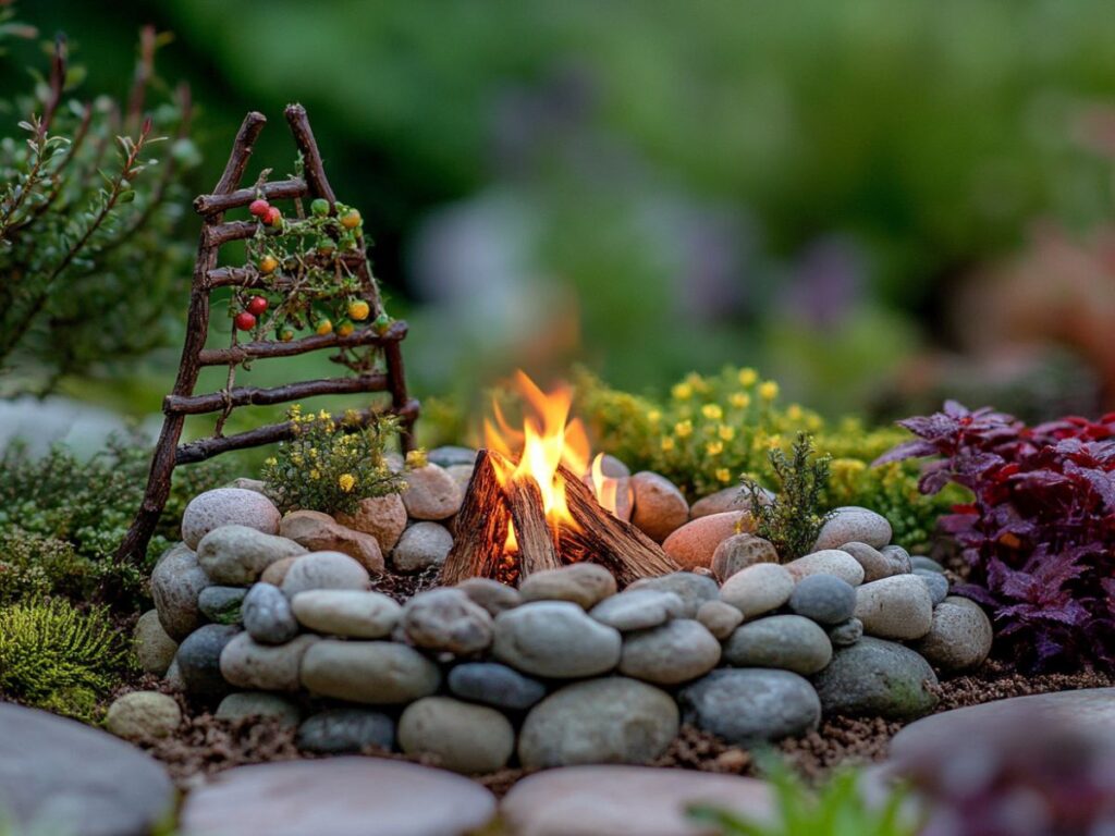 Create a cozy gathering spot with a miniature fire pit. Perfect for tiny fairies to gather around, it brings warmth and a sense of community to your garden.