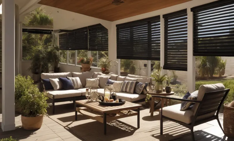 Install outdoor blinds for a sleek, modern look. Easily adjustable, they provide the perfect blend of light control and privacy.