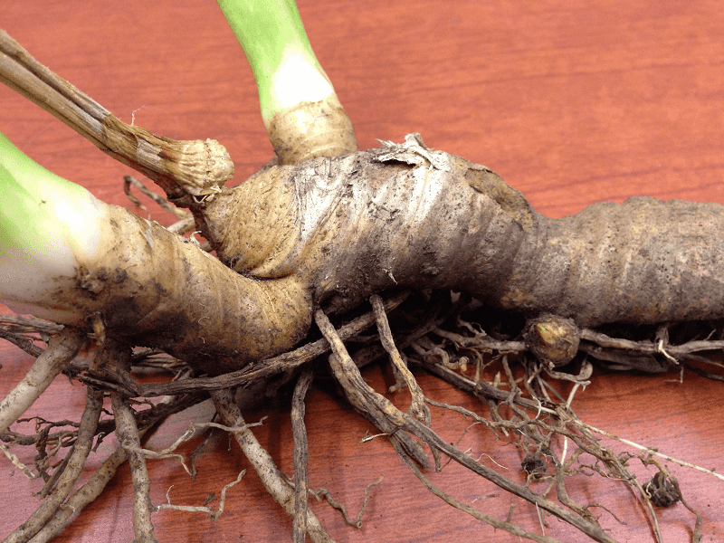 Look for firm, plump sections with healthy roots. Soft spots, holes, or mushy areas signal trouble—these need removal. Those cream-colored rhizomes with pencil-thick roots and green leaf fans are your garden gold!