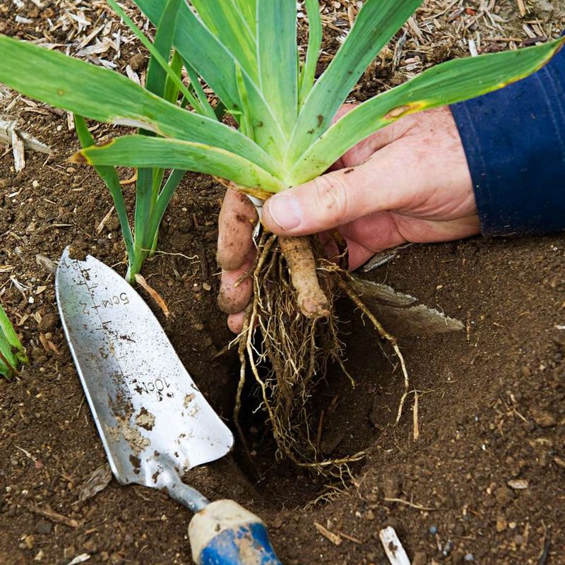 Grab those pruning shears again and trim the roots to about 3-4 inches long. This root haircut stimulates new growth and makes planting easier. Don’t worry—your irises won’t mind this trim!