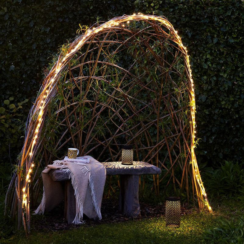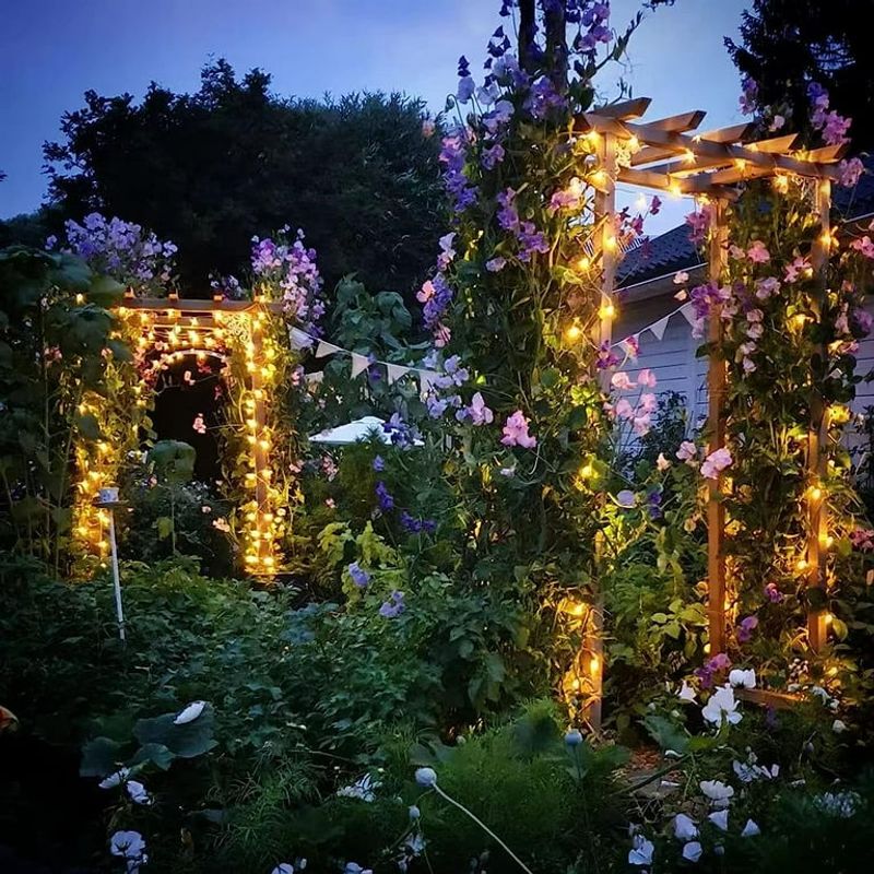 Curtains of fairy lights drape elegantly from pergolas, enveloping your garden in warmth and intimacy. Perfect for evening gatherings, these lights create a cocoon of comfort.
