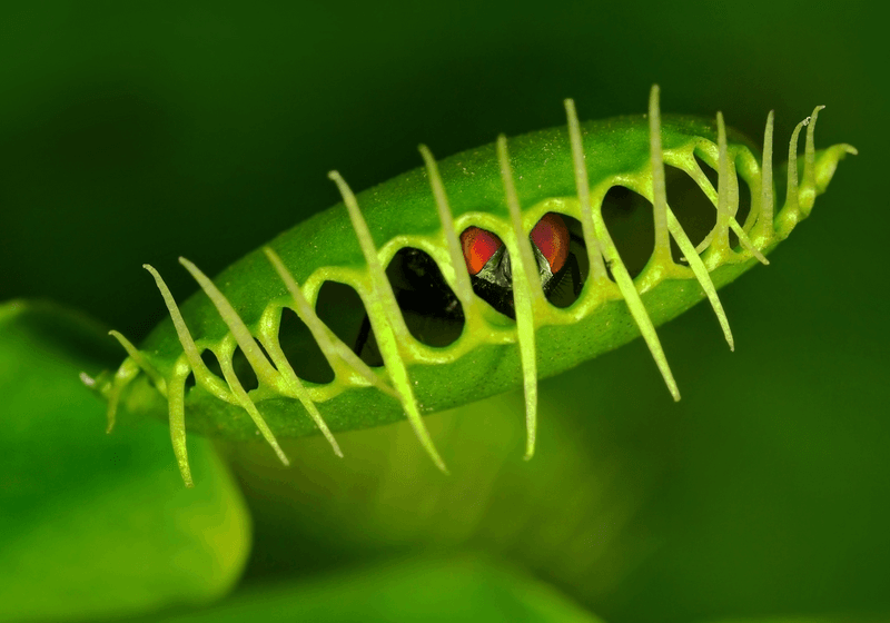 The Venus Flytrap is renowned for its jaw-like traps that snap shut on unsuspecting insects. Found in the wetlands of the Carolinas, this plant uses sweet nectar to lure its prey. Once a bug triggers its sensitive hairs, the trap closes in a tenth of a second.