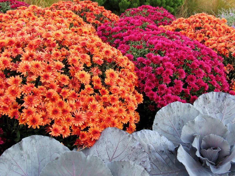 Chrysanthemums, often called ‘mums,’ are the stars of the autumn garden. Known for their rich colors and variety, they bloom from late summer to frost, providing a burst of color as other flowers fade.