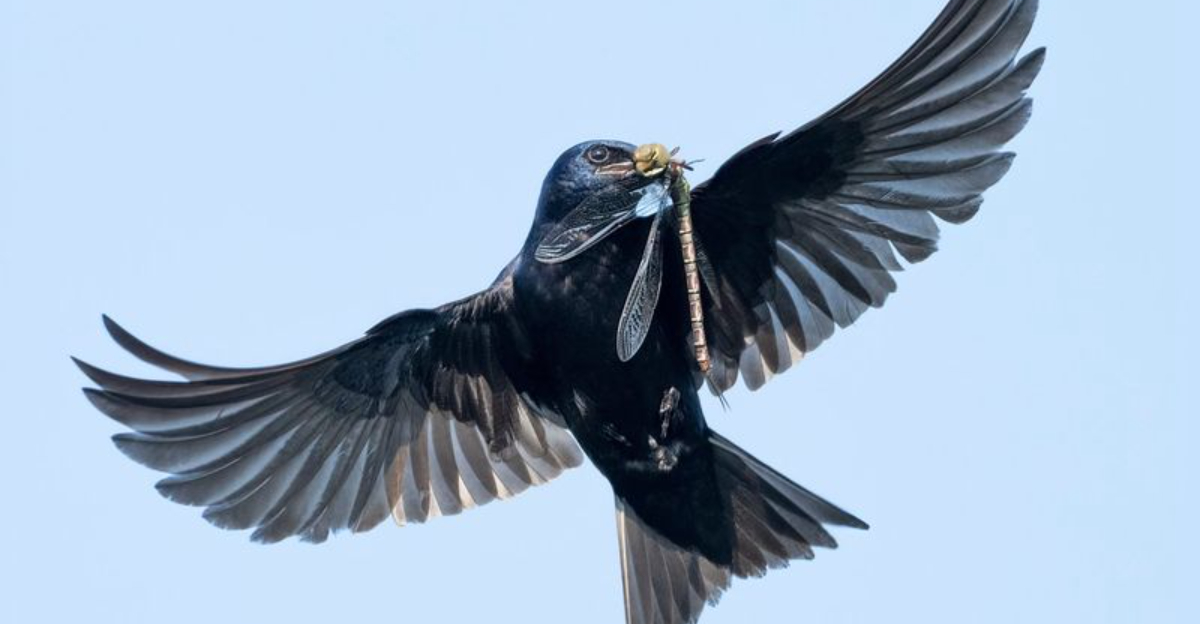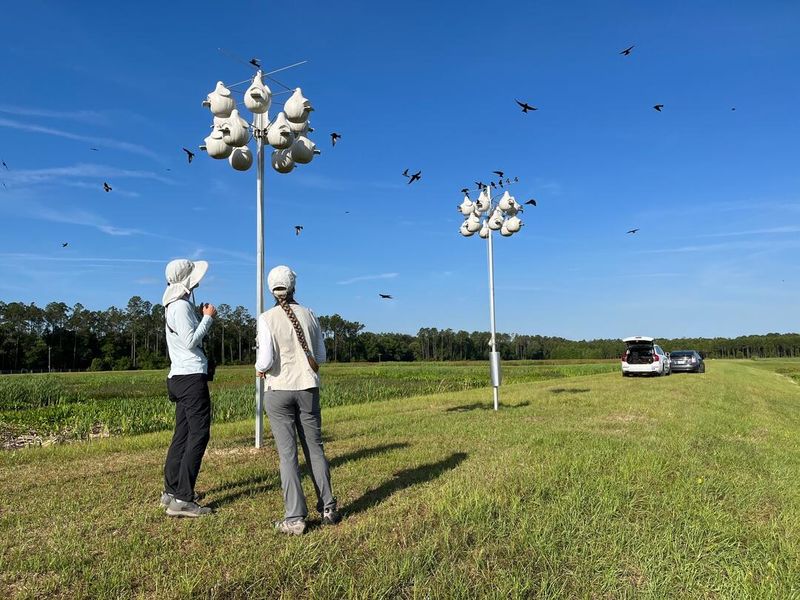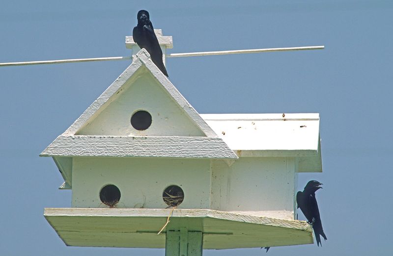 Purple Martins thrive in open spaces free from tall trees. These birds are aerial acrobats, needing room to dive and soar.