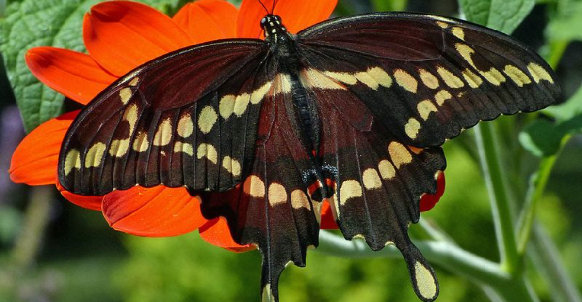 At first sight, the Giant Swallowtail’s size is truly remarkable. With a wingspan ranging from 4 to 6 inches, it holds the title of one of the largest butterflies in the United States. The graceful, slow-gliding flight of this butterfly is unmistakable, captivating observers with its grandeur. Imagine spotting this magnificent creature as it effortlessly soars over a vibrant garden, its presence undeniable and awe-inspiring. Observing its flight can feel like witnessing a delicate dance as it navigates the air currents with elegance and poise.