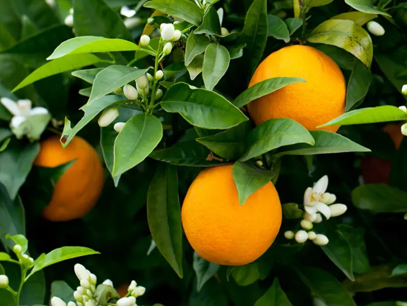 This tree’s striking orange blossoms attract pollinators, enhancing biodiversity. Its compact size doesn’t limit its productivity, offering an abundance of fruit even in confined spaces.