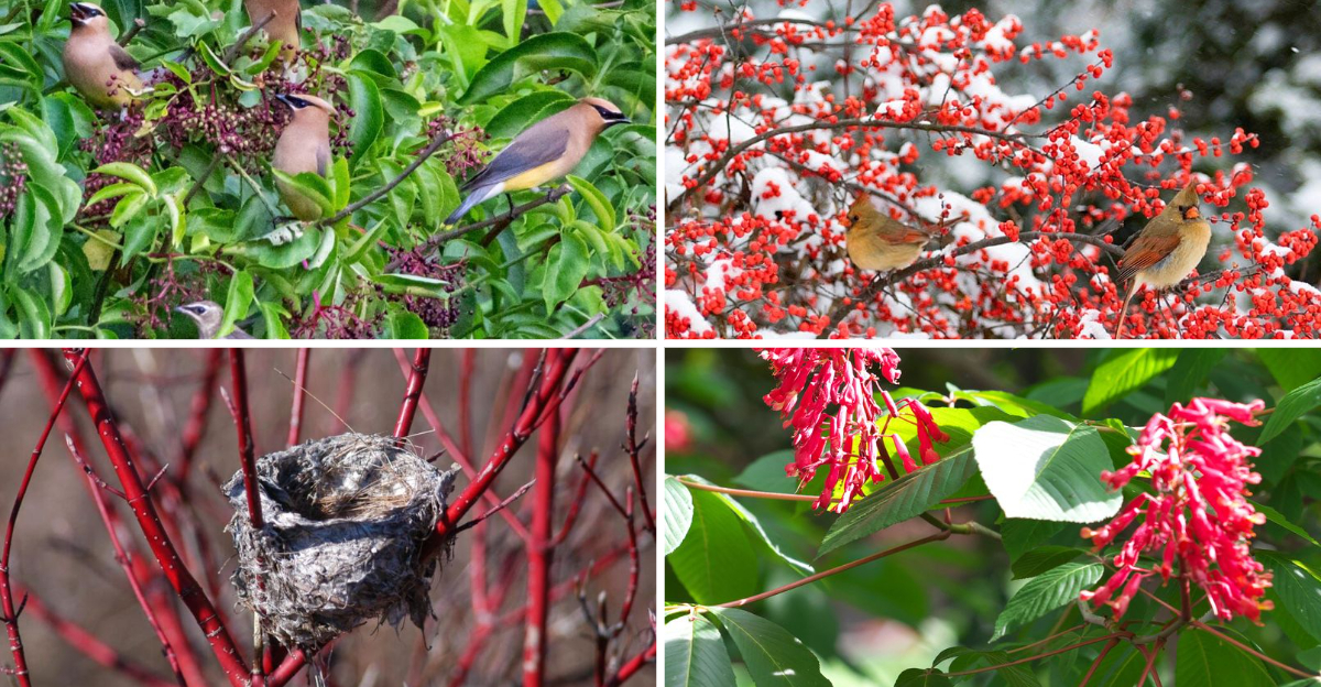 The serviceberry tree, with its delicate white flowers, is a magnet for songbirds during the spring months. Known for its early bloom, this tree provides a much-needed food source for birds awakening from winter’s slumber, offering them both nourishment and a place to perch.