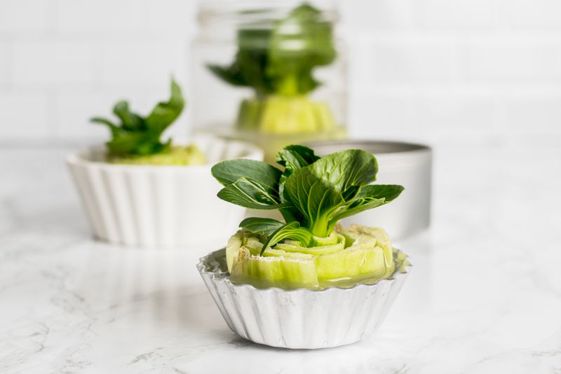 Bok choy, with its tender leaves and crisp stems, is a delightful regrower. Place the base in water, and watch as new growth springs forth. This Asian green adds a robust flavor to dishes, making it a kitchen staple.