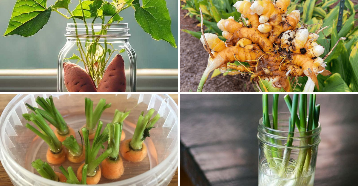 Ginger, with its aromatic and spicy flavor, can be regrown effortlessly. Bury a piece of ginger in soil and soon it will sprout, showcasing its tenacity. This root not only enriches dishes but also transforms into a lush plant.