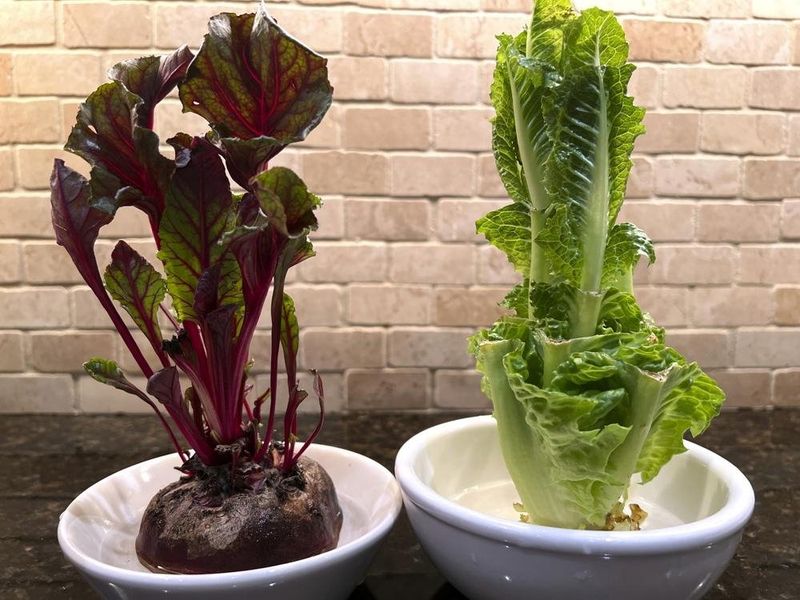 Beet greens, with their vibrant leaves, can be revived from discarded beetroot tops. Simply submerge the top in water, and within days, watch as the leaves sprout anew.