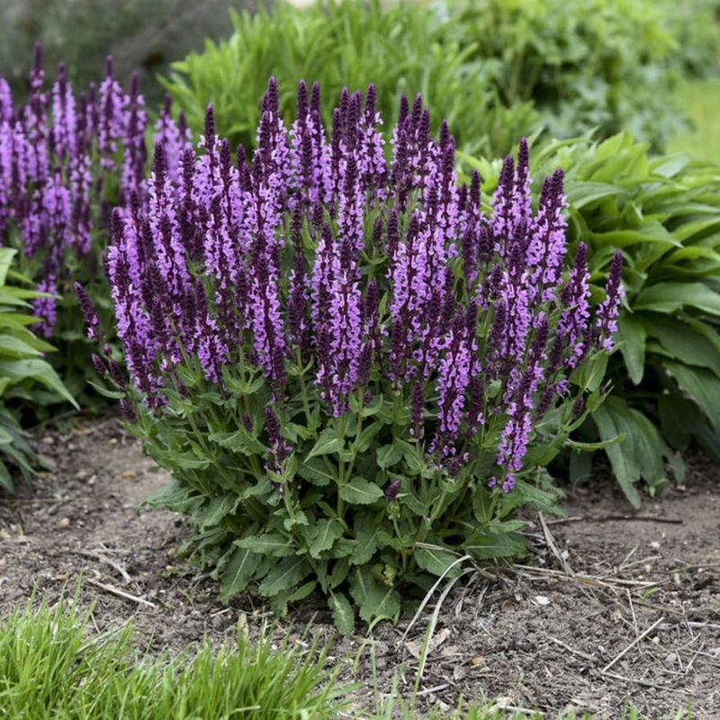 Salvia offers a burst of color with its tall spikes of blue or red flowers. Butterflies and hummingbirds are drawn to its nectar, and it stands resilient against pests, augmenting the garden’s vitality.