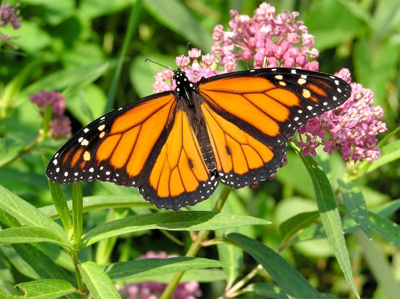 Milkweed is essential for monarch butterflies, providing both food and habitat. With its clusters of pink and orange flowers, it attracts a variety of butterflies and pollinators while deterring pests.