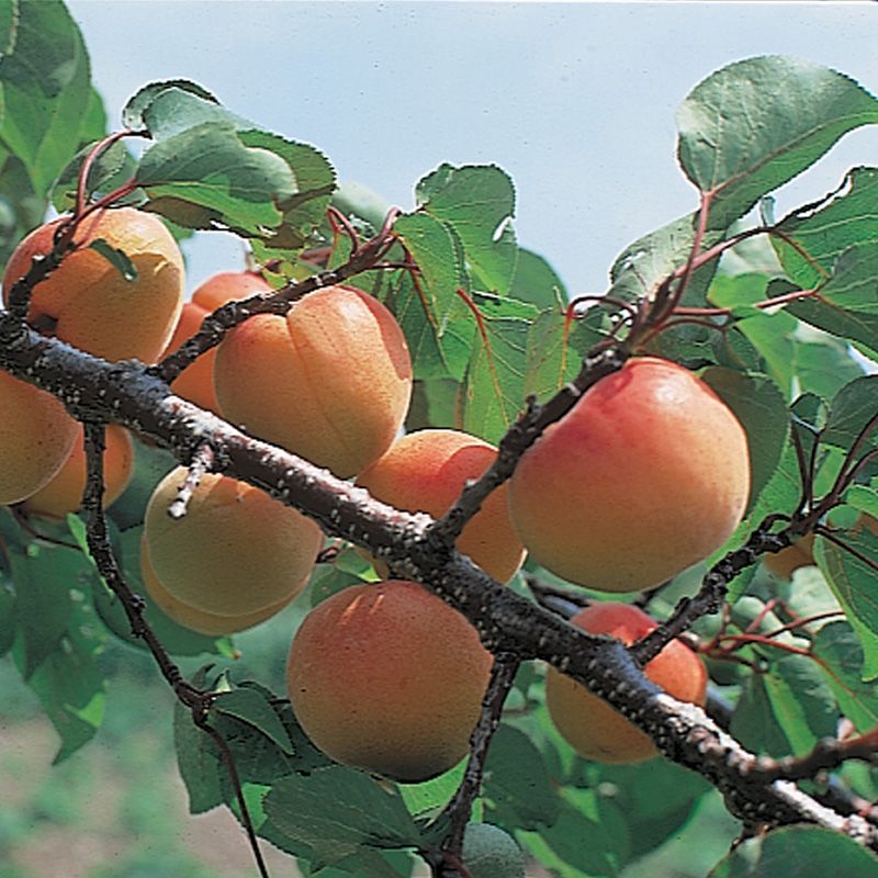 Moorpark apricot trees are cherished for their large, flavorful apricots. Known for their sweet and tangy taste, these apricots are ideal for fresh eating and preserves.