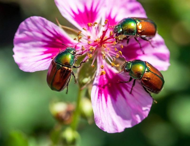 Gardeners strategically plant geraniums to lure beetles away from prized crops, using nature’s beauty as a decoy. The beetles’ fascination with geraniums helps reduce damage to more essential plants.