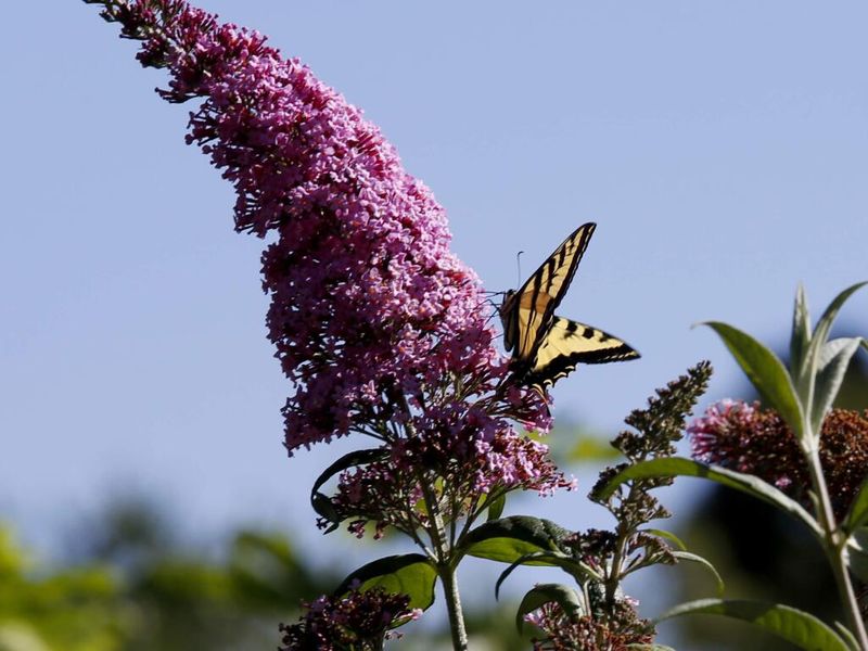 Known for attracting butterflies, Buddleia thrives in the hottest conditions. This hardy shrub flourishes under the sun’s intense rays, producing beautiful spikes of purple blossoms.