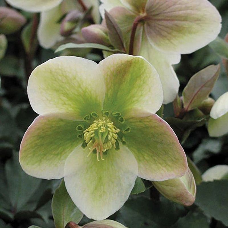 Helleborus ‘Ivory Prince’ reigns supreme with its ivory-colored flowers that bloom in late winter to early spring. Its blossoms rise above leathery, deep green leaves that remain evergreen throughout the year.
