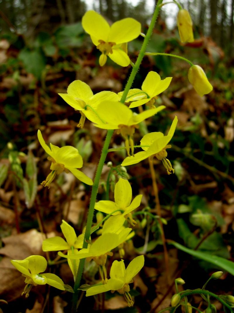 Epimedium ‘Frohnleiten’ dances into the garden with its dainty, yellow blossoms and heart-shaped leaves. This perennial is known for its graceful movement, appearing as if the flowers are twirling in the breeze.