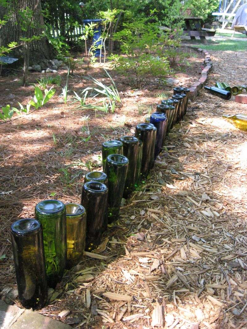 Glass bottle edging adds a whimsical and creative touch to gardens. Utilizing recycled bottles, it’s an eco-friendly option that reflects sunlight, creating a dazzling display. Each bottle contributes to a colorful and unique border.
