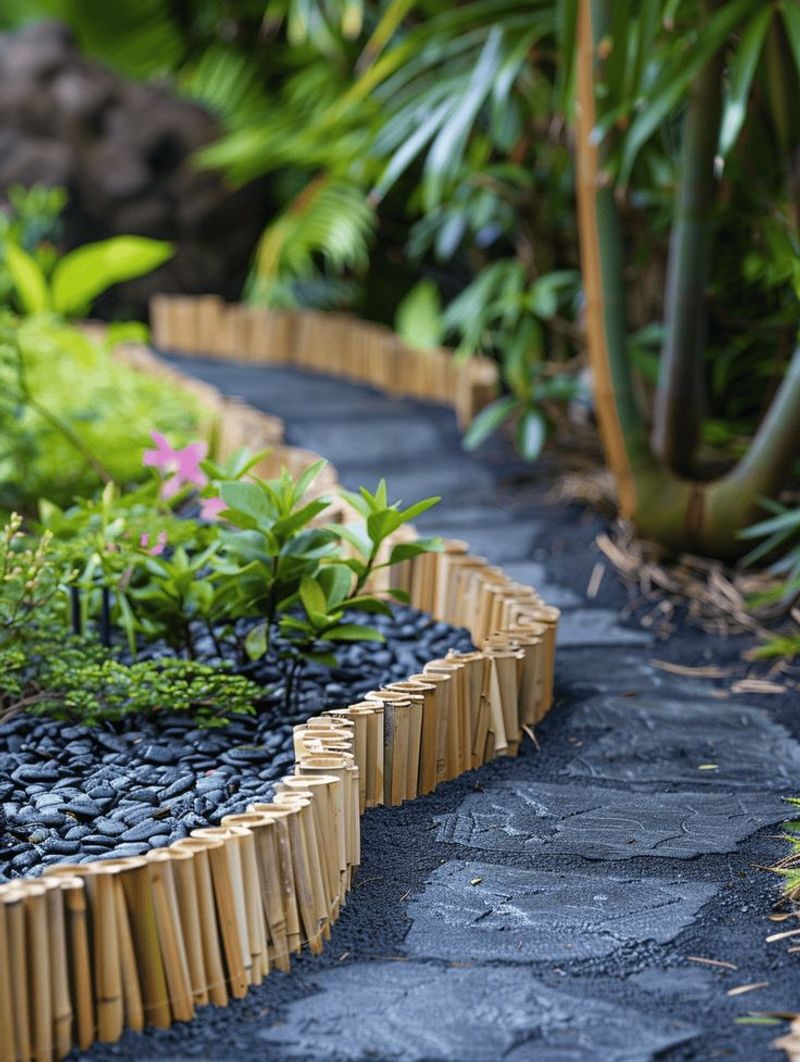 Installation is relatively simple, with the flexibility to create curved or straight lines. While bamboo is susceptible to weathering, proper treatment can prolong its life. For those aiming to infuse their garden with tranquility and natural charm, bamboo edging offers an eco-friendly and stylish solution, enhancing the garden’s serene ambiance.