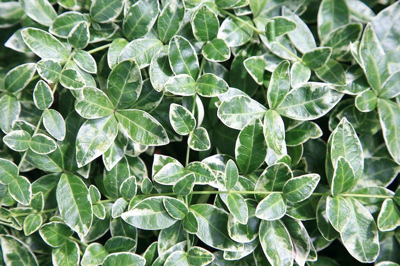 Vinca Major ‘Variegata’ captivates with its striking variegated leaves, blending creamy white with lush green. Its foliage alone is enough to steal the spotlight in any garden.