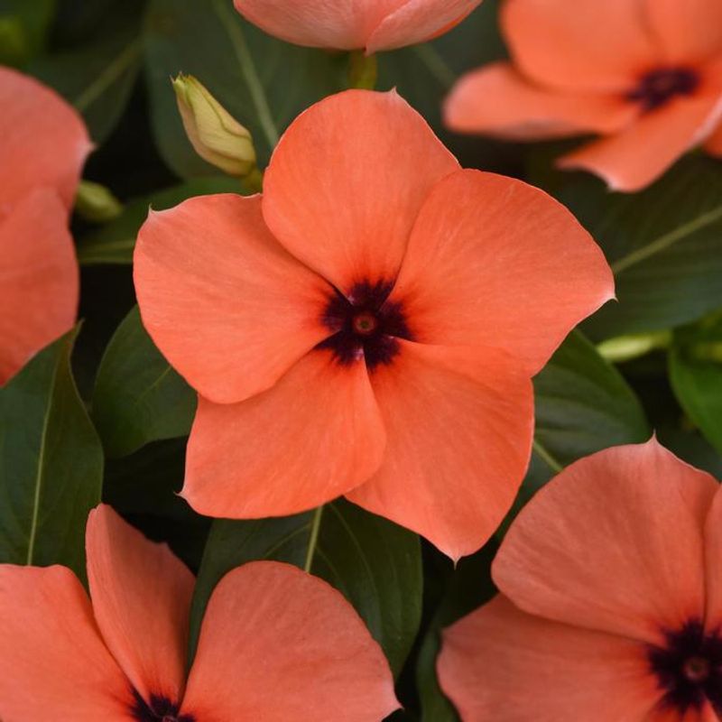 Catharanthus Roseus ‘Jaio Deep Apricot’ adds a splash of warmth with its stunning apricot flowers.