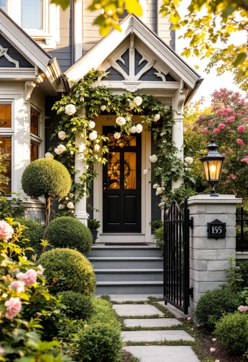 Embrace the grace of the Victorian era with this elegant setup. Ornate pots filled with roses and hydrangeas add a touch of classic romance to your porch.