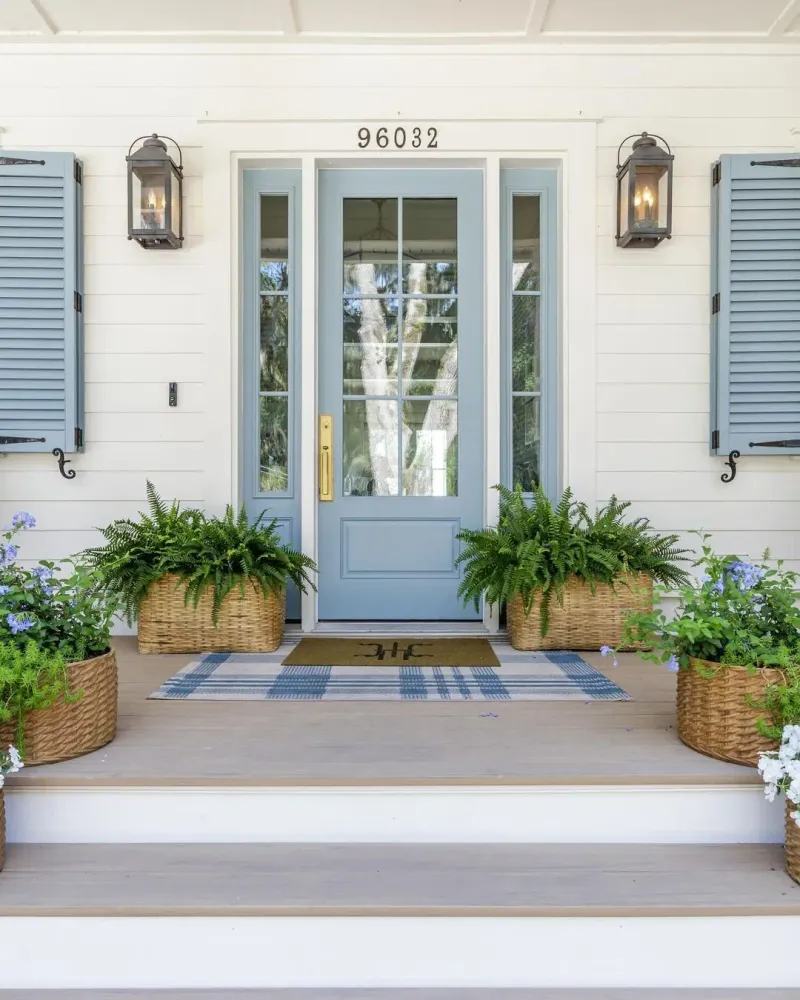 The subtle greenery provides a touch of nature without overwhelming the senses, making it an ideal choice for a porch that exudes calm sophistication and modern charm.