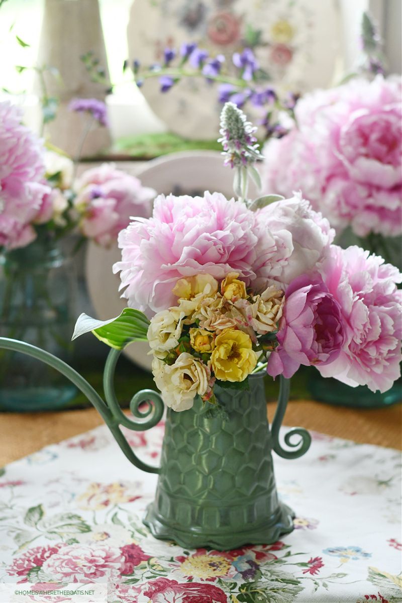 Channel the elegance of yesteryears with this vintage arrangement. Antique ceramic pots filled with peonies and lavender bring a touch of old-world charm to your porch.