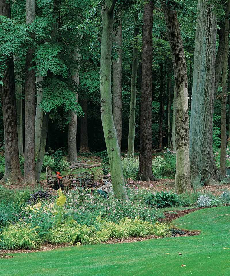 Tall trees stand as sentinels, casting dappled shade across the garden floor. Their towering branches and lush canopies are nature’s way of providing both shelter and serenity.