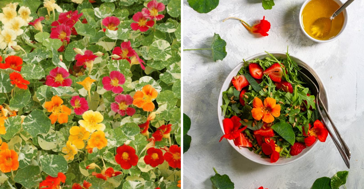 Nasturtiums aren’t just for show; they’re edible and pack a flavorful punch. With a peppery taste reminiscent of watercress, both the leaves and flowers can enhance salads, pastas, and garnishes.