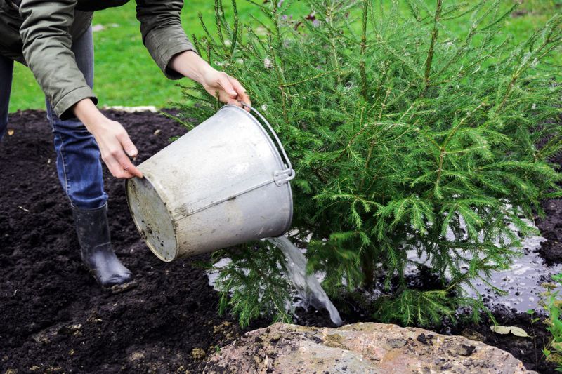 Ensure the soil is not frozen before watering, as this can cause damage. Water on milder days when temperatures are above freezing.