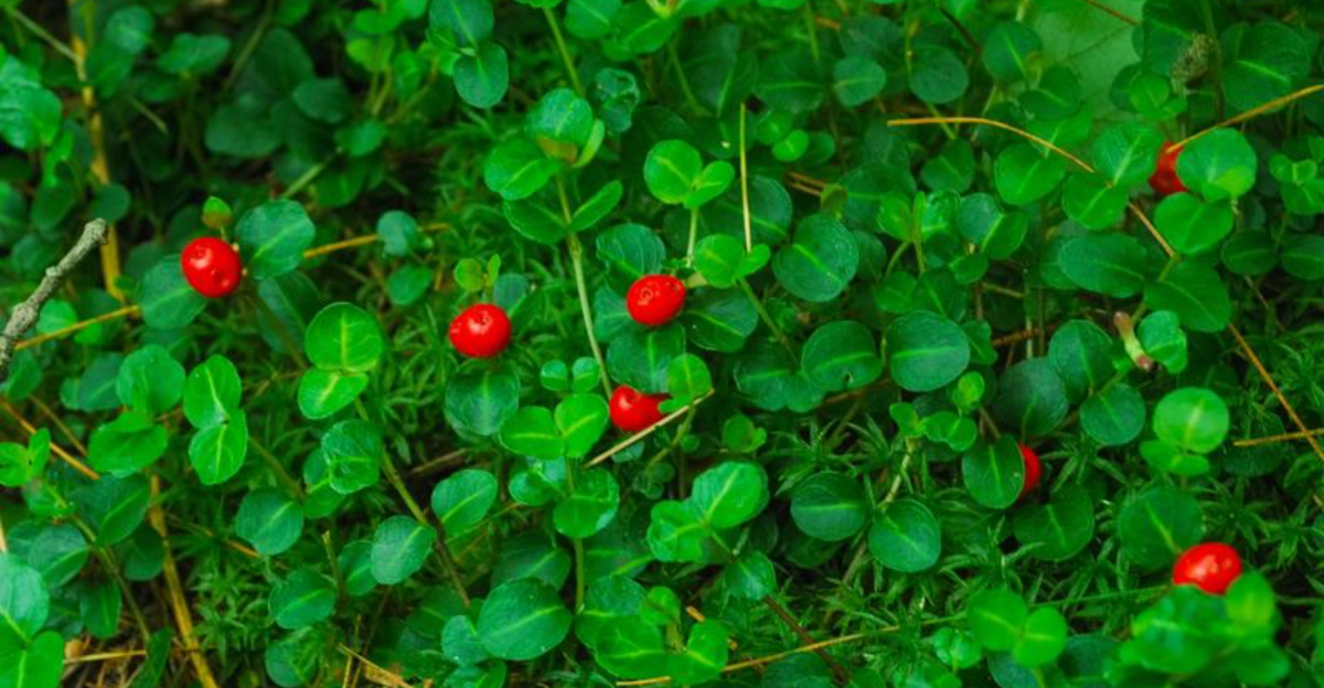 In the cool embrace of the forest, Partridgeberry weaves its delicate charm. With trailing stems, white flowers, and bright red berries, it offers an understated elegance to shady gardens.