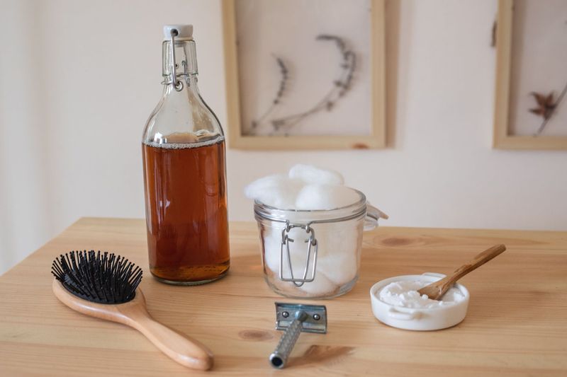 The vinegar and witch hazel toner is a natural blend. Mix one tablespoon of vinegar with two tablespoons of witch hazel. Use this as a toner to clean and calm the skin. The combination is gentle yet effective. Vinegar provides drying action. Witch hazel contributes its soothing properties. Together, they offer balanced skincare. This toner is easy to make. Use it regularly for best results. A natural alternative to commercial products. Experience the refreshing feel it provides. Perfect for sensitive skin. A gentle touch in rash treatment.