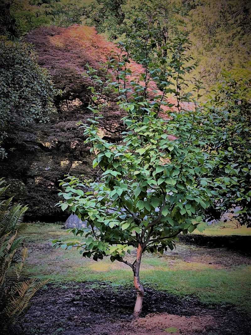 The Japanese Stewartia captivates with its white camellia-like flowers and smooth, exfoliating bark. Offering year-round appeal, it fits comfortably in smaller spaces. Its understated elegance and unique features make it an artistic addition to gardens without overwhelming presence.